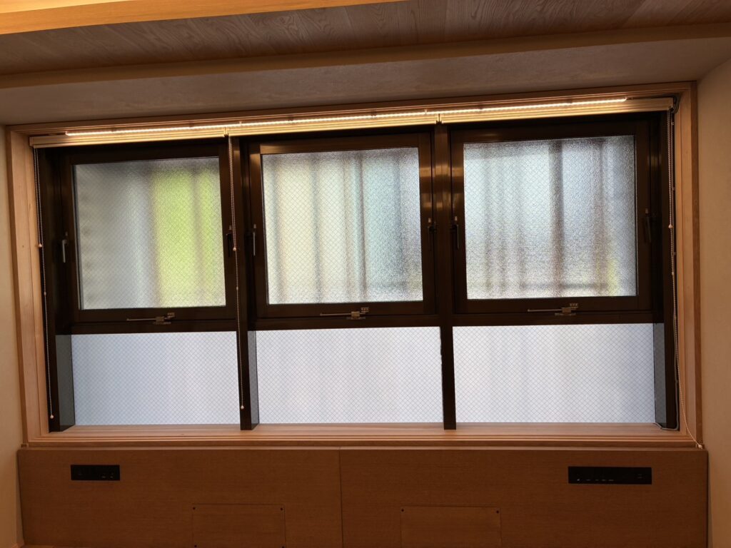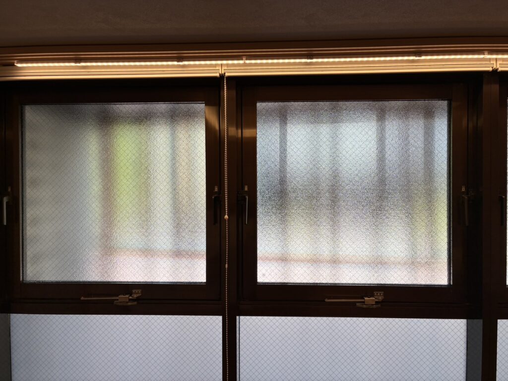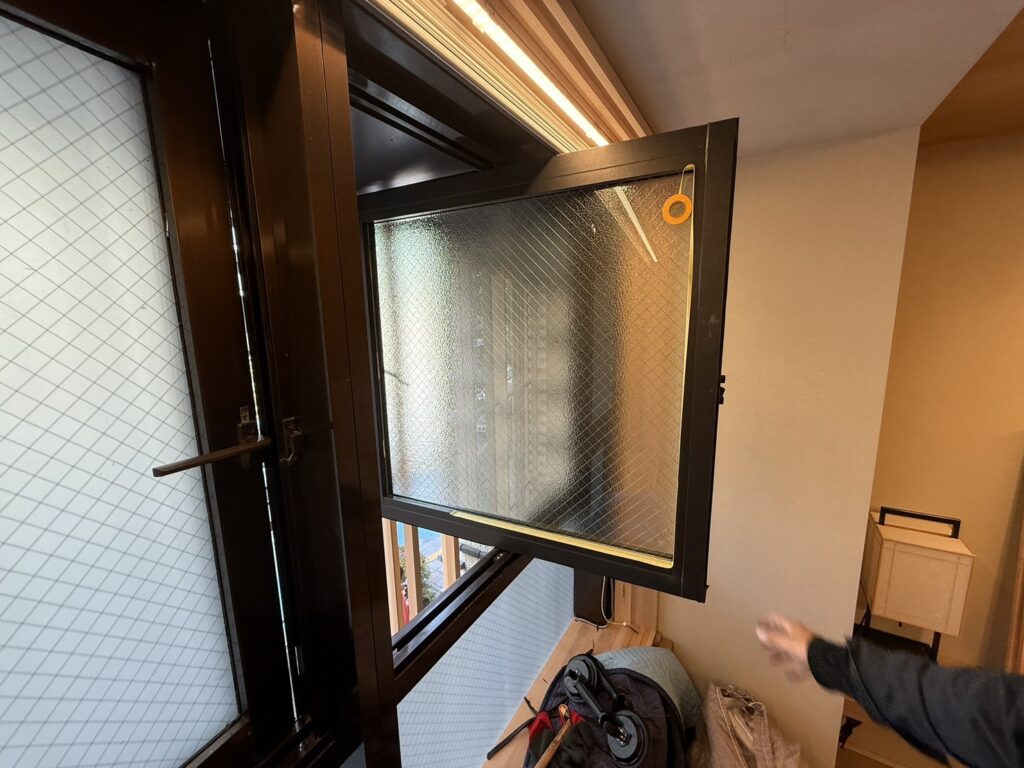 今回の現場が大通り面した宿泊施設からのご依頼。大通りに面しているので、車の音などを気にされており対策としてガラス交換になりました。元々6.8ミリ型菱網ガラスが入っていましたが、それを防音ガラスに交換作業を行いました。
