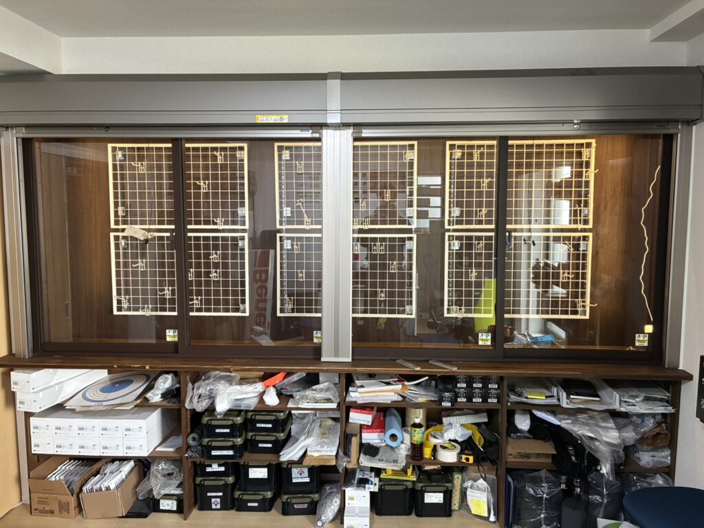 棚スペースに窓枠を設置し強化ガラス仕様で大切な物を安全に保管