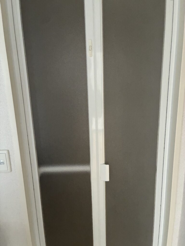マンジョン浴室折り戸アクリル扉が破損をしたため交換依頼現場でアクリルカット、折り戸を分解脱着作業をしました。