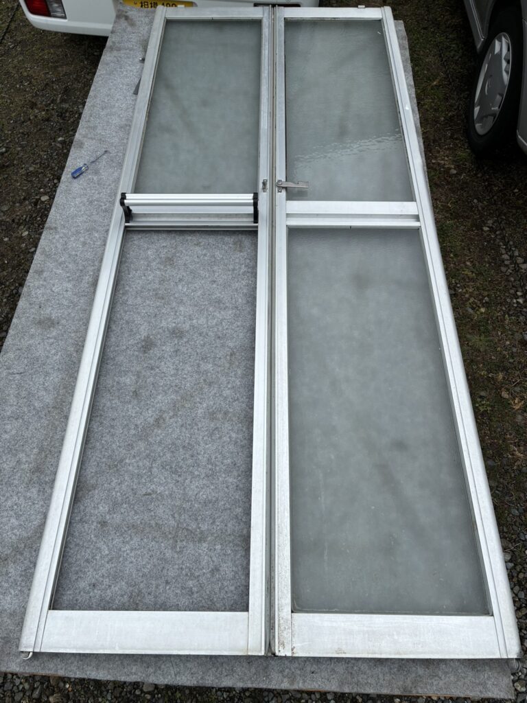 今は滅多にないですが浴室の折り戸の扉ががガラスになっており、お客様が転んでしまい割れてしまった現場です。お客様がガラスを固定する為のゴムパッキンをガラスと一緒に捨ててしまったのでコーキング作業に変更して無事に完了しました。直るまでにダンボールで塞いでいたので、これからは安心してお風呂に入れますと喜んで頂けました。